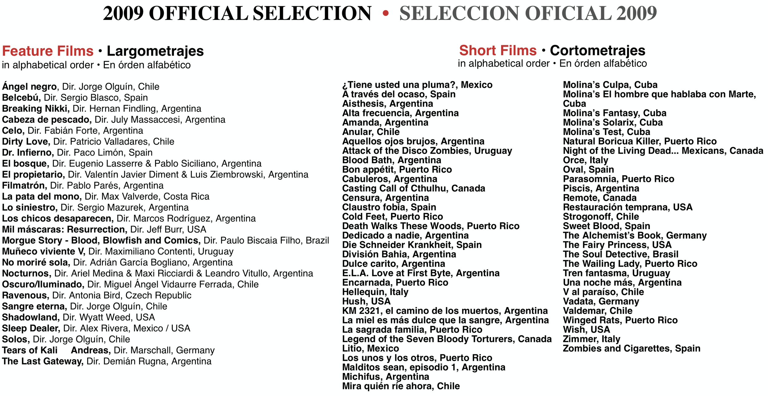The 2009 Puerto Rico Horror Film Fest, held from October 22–28, continued to grow as an international platform for horror, fantasy, and bizarre cinema. The festival presented a diverse program of feature films and short films from around the world, bringing together filmmakers and audiences to celebrate the creativity and global diversity of genre filmmaking.